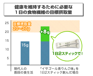 注)1日に必要な食物繊維とイサゴール青リンゴ味が補う不足した食物繊維