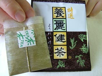 養麗健茶(ようれいけんちゃ)の飲み方ですが、湯飲み(ティーカップなど)にティーパックを入れて熱湯を注ぎます。濃さですが、これは好み、というかその時の便秘の状態に合わせて調節します。