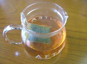 中はこんな感じです。緑茶のような感じですね。ティーバックになっていますから、飲みやすいです。